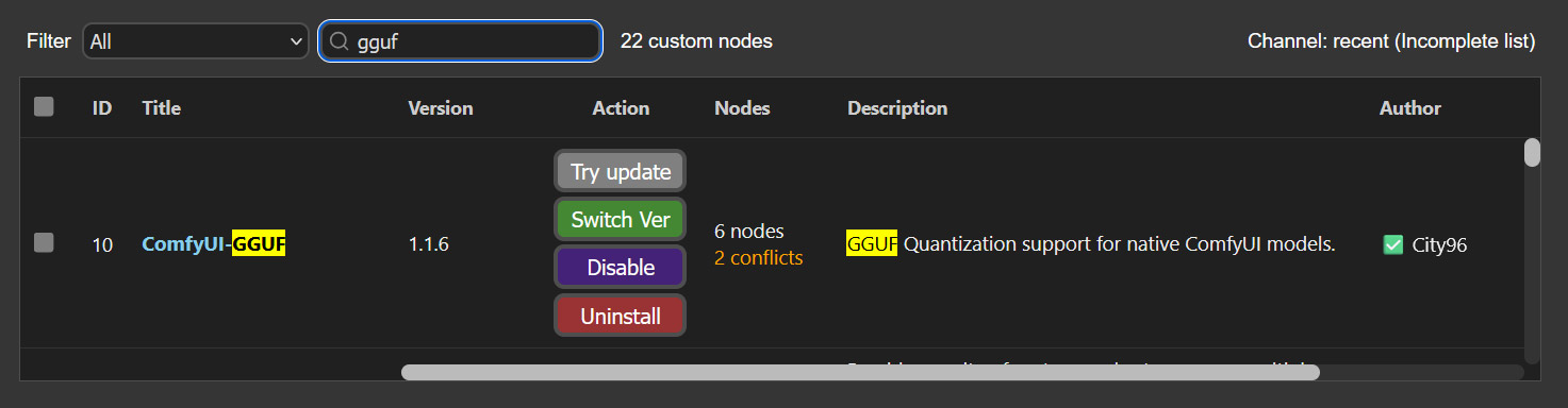 To be able to use GGUF quantized models, we will need to install a custom node.