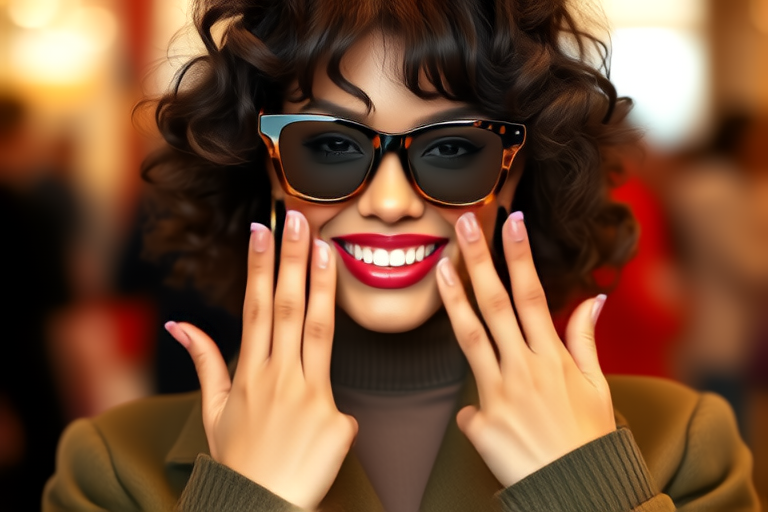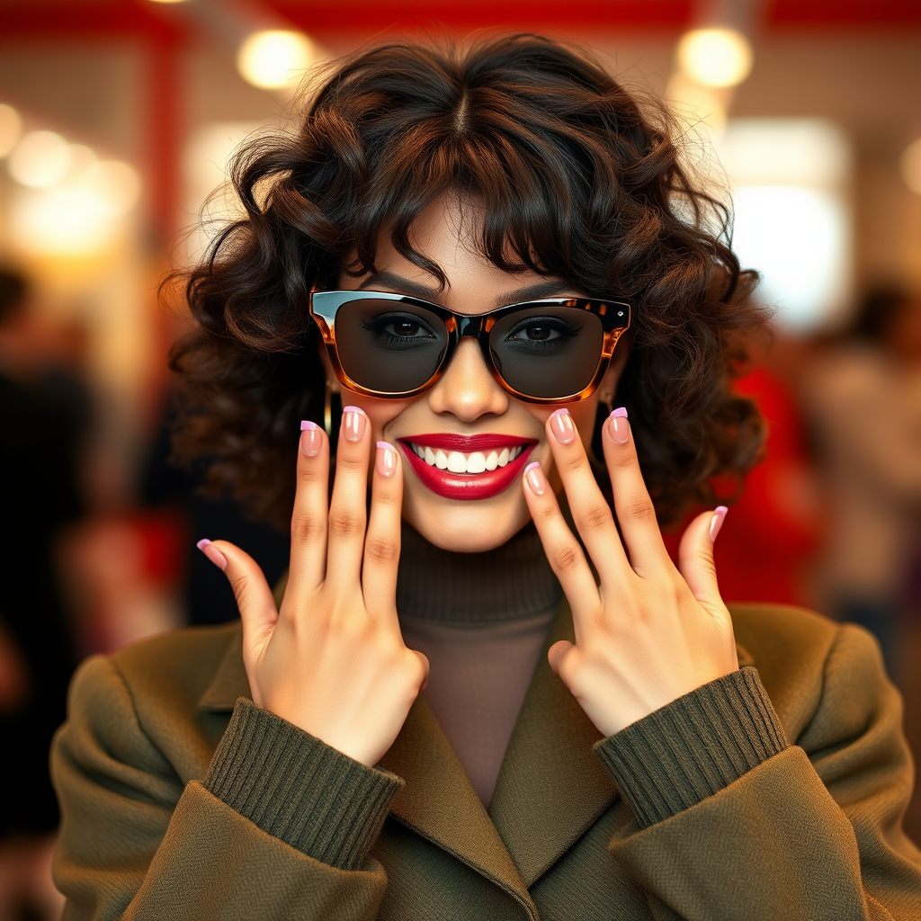 Woman removes her glasses and does a quick shake of her head to wave her hair. | ![]() |