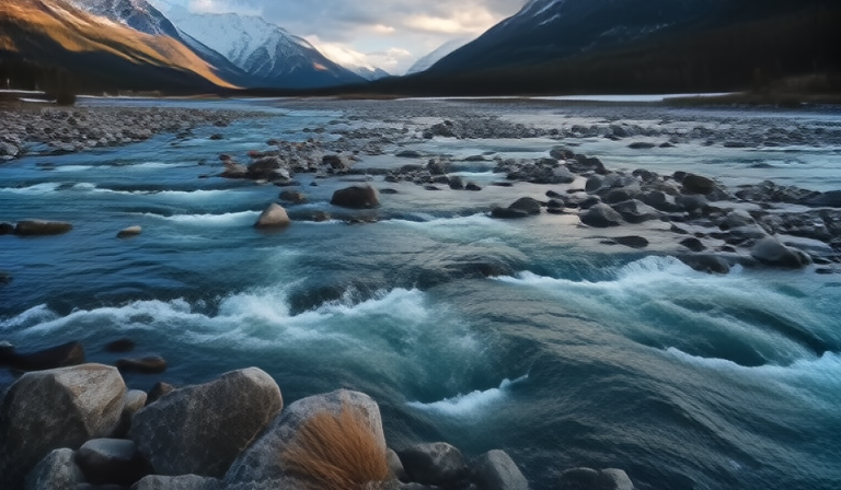 Photograph beautiful scenery nature mountains alps river rapids snow sky cumulus clouds. | ![]() |